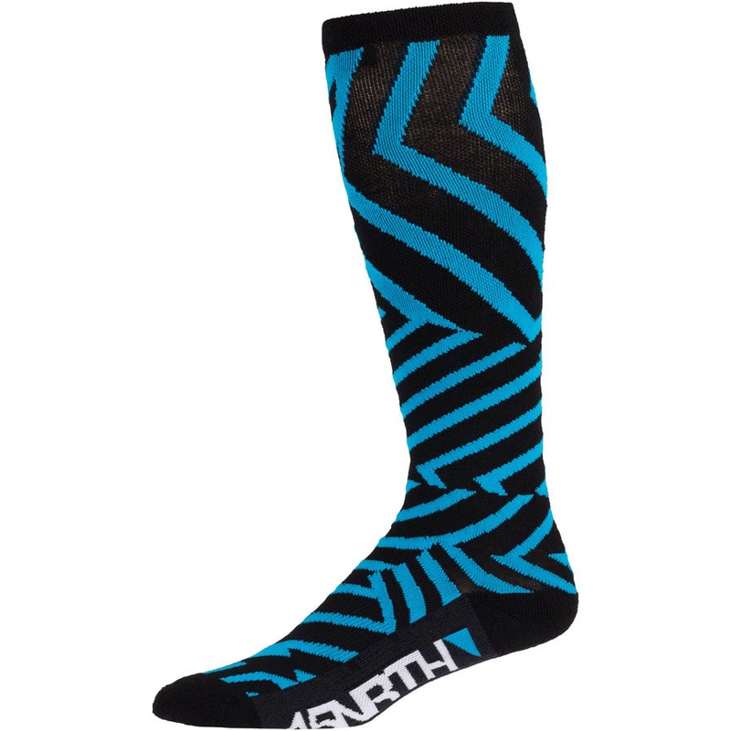 45NRTH Dazzle Midweight Knee Wool Sock – Blue Small. Our knee-high midweight socks are warm enough to keep the cold at bay but wont add bulk under your Naughtvind bibs. Knee-high coverage eliminates gaps in layers making these the best winter cycling socks for combining base layers pants and boots. The Merino wool blend wicks moisture away from your feet to keep them warm and dry. Wear them on their own on cold days or layer them with our lightweight socks for a vapor barrier in deep cold.