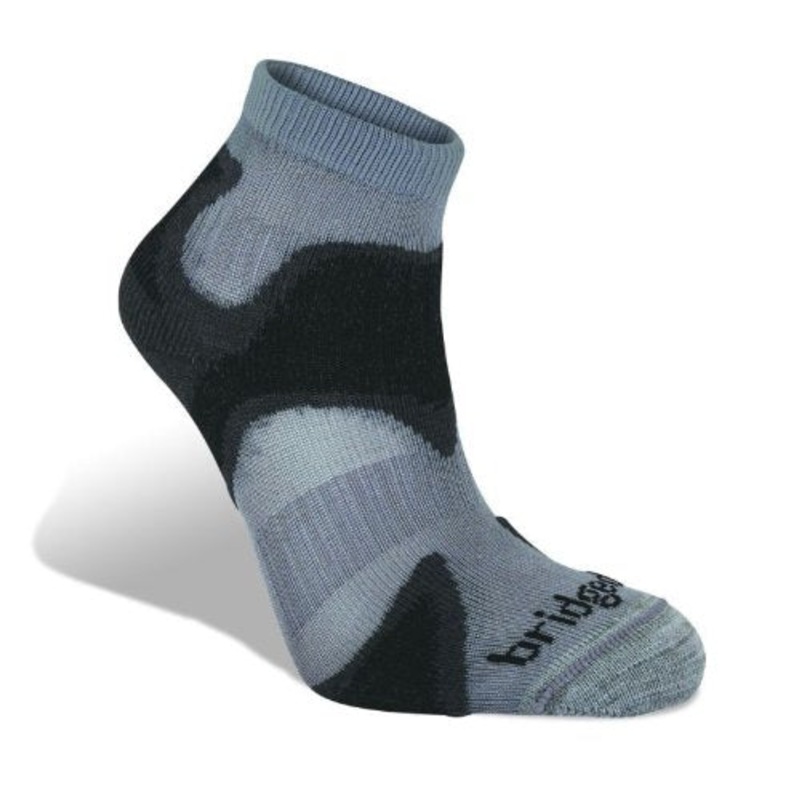 A light and highly breathable sock with targeted ventilation to keep feetcool. CoolFusion RUN technology maximizes the benefits of natural andtechnical fibres knit in such a way so as to combine ventilation andcushioning with elasticized fit and foot wrapping performance. Built withBridgedale’s exclusive T2 anti-shock technology. This is a loop within a loopwhich offers an additional level of impact protection; the inner loop has evenmore resilience than the outer loop for cushioning on the achilies, heel, andmetatarsal head. T2 pad technology has been knit into the pressure points:ball of the foot, lace up. Knit with Merino Wool that provides softness andexcellent moisture wicking properties. ENDUROFIL adds additional durabilityand wash resistance and LYCRA SPORT for the perfect fit. Light cushioning and3/4 crew height.