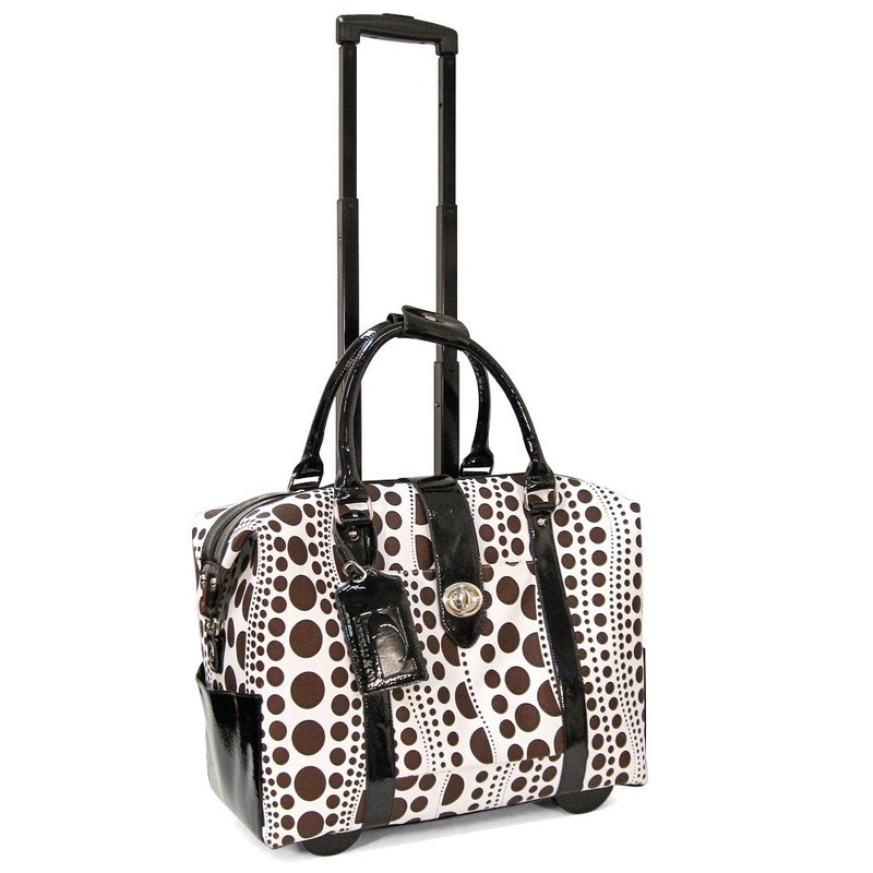 Color:Sand/Brown Fashion on wheels: this airplane carry-on size executiveroller brief, a simulated pebble leather beauty with wavy polka dot print andblack patent trim detailing, is fitted for the working, traveling woman whoappreciates the smart and uncon