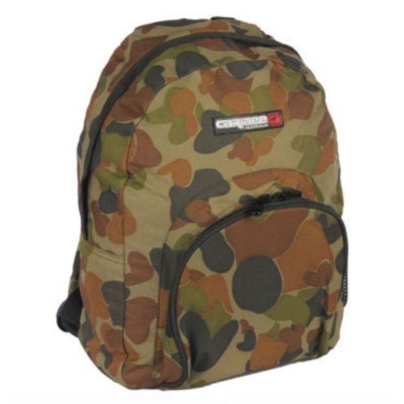506500CO Features: -Action back harness system. -Bottle pockets. -Constructedof polyester. -Heavy duty construction. Product Type: -Daypack. Material:-Fabric. Color: -Multicolor. Pattern: -Camouflage. Water Bottle Holder: -Yes.Age: -Adults. Dimensions: Overall Product Weight: -2 Pounds. Overall Height -Top to Bottom: -16 Inches. Overall Width – Side to Side: -11 Inches. OverallDepth – Front to Back: -9 Inches.