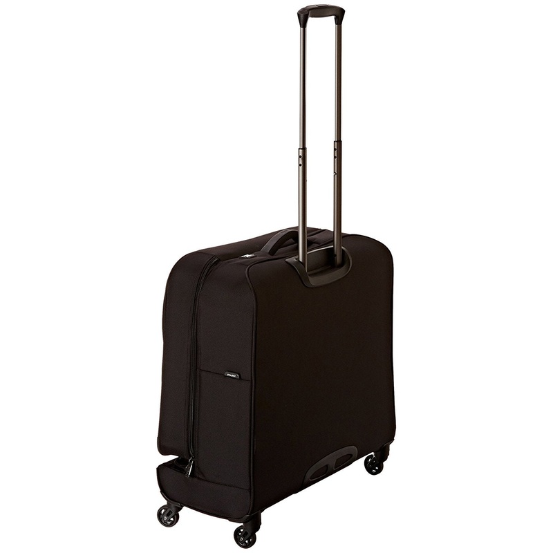 Deluxe interior with multiple zippered pockets and metallic finish fabricAdjustable mesh panels with zippered pockets keep contents from shifting and minimize wrinklingRemovable tri-fold suiter on the medium and large uprights helps formal attire to remain