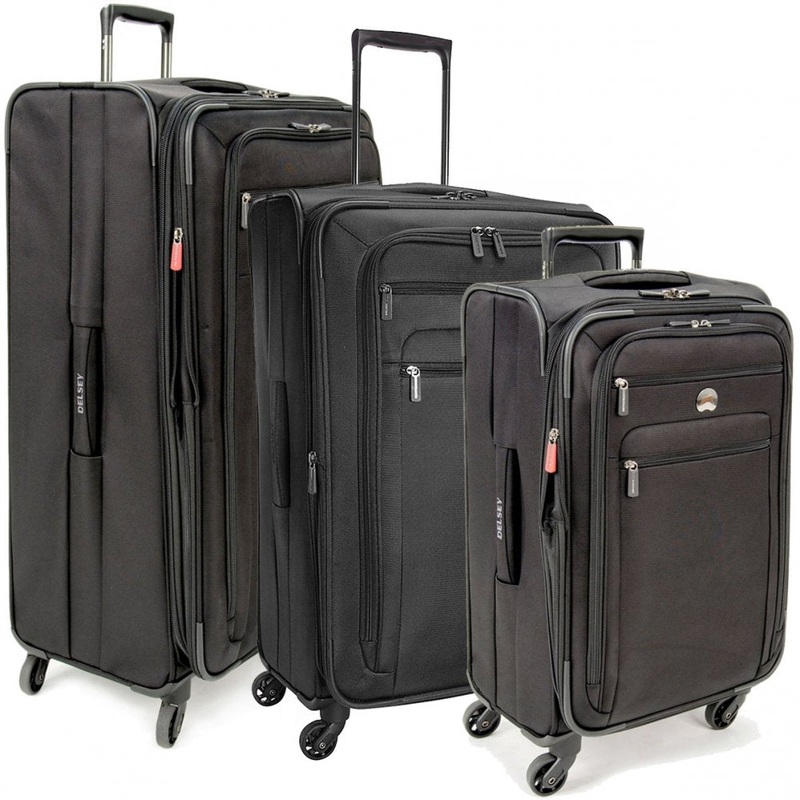 This Delsey Paris Helium Sky 2.0 luggage set includes a 21-inch 2-wheel expandable trolley and a 29" expandable spinner suiter trolley.This softside set is complete with 3 exterior pockets and interior tie down straps and zipepred pockets for optimal organ