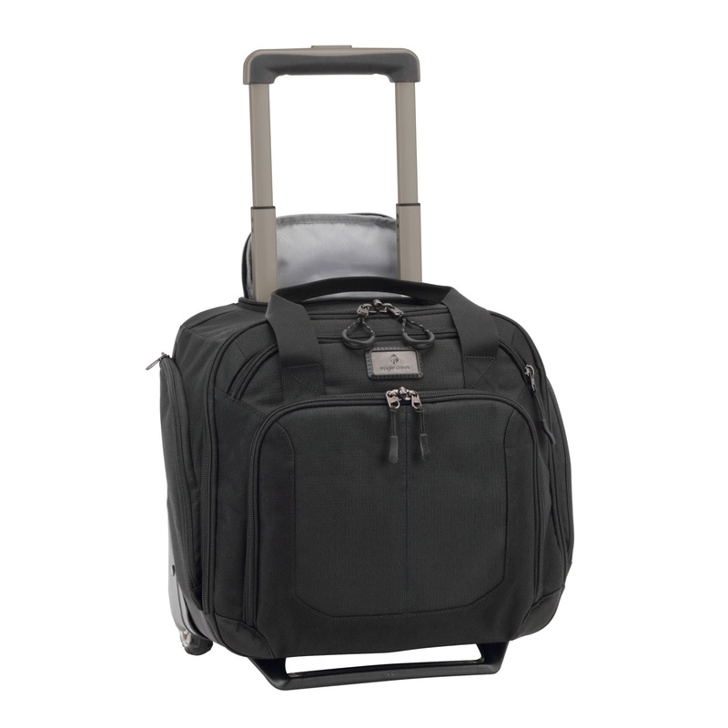 This lightweight carry-on tote is a perfect travel companion for every trip. And get this: it has an elasticized back slip panel so that you can securely stack it on your wheeled luggage. With two-way lockable zippers, multiple pockets for organization, front organization panel, and a travel-tested wheel and wheel system, the EC Wheeled Tote has durability you can count on. This wheeled tote is great for one-day or overnight trips, giving you ease of access to in-flight necessities. Durable, lightweight and smart, thats the EC Adventure Collection promise. Built tough for every journey.