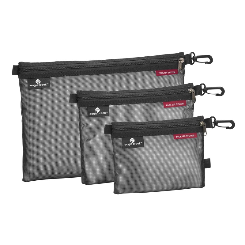 With a million-and-one uses, use large Pack-It Sacs to contain full-size toiletries, computer cords, reading material, and any smaller items that sometimes get lost inside your travel bag. Made from a water-repellent laminated mesh material to help your th