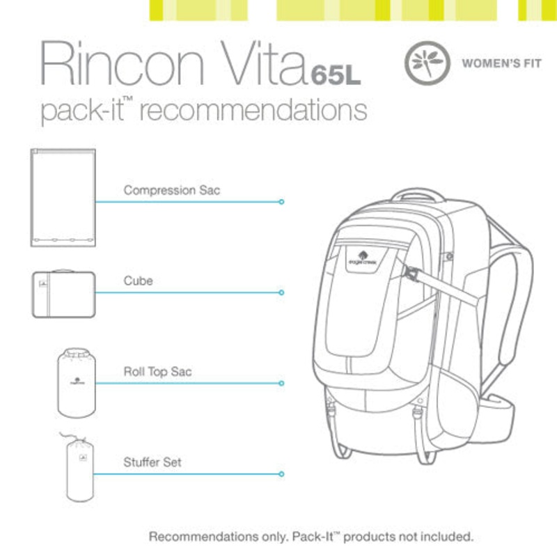 This womens travel backpack is carry-on sized when you remove the modular zip-off backpack. Designed for city-to-city travel and treks or backpacking trips, this womens pack has front panel load, central locking points and reflective trim. The Rincon Vita backpacks Contour Fit Suspension System was designed with travel and comfort in mind. It zips away to protect your bag by keeping the straps out of your way when its not on your back. With the convenience of a zip-away suspension system, you can easy store it in a hostel locker or overhead bin.