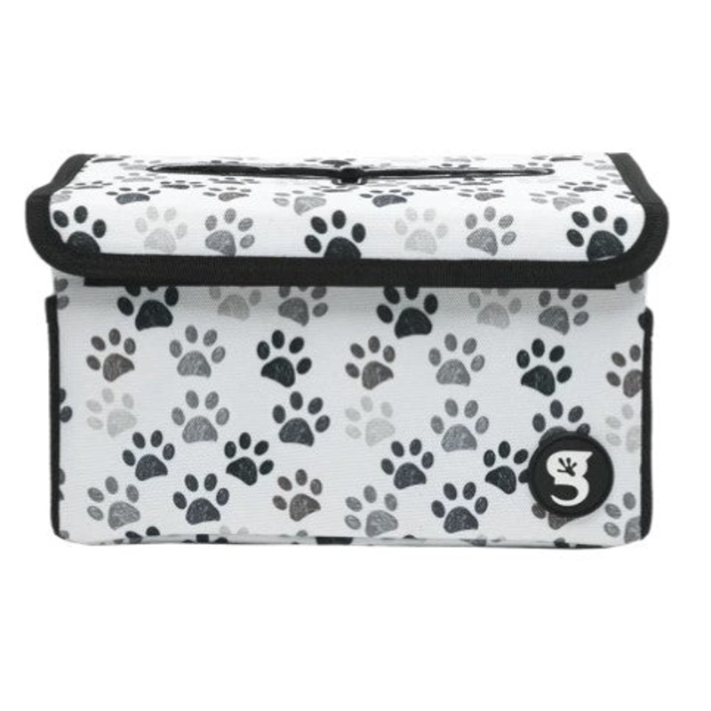 pefect for 2 square tissue boxes or 1 large one. Removable divider to accomoadate different variations of storage. Apply to the back of the headrest in your car to make sure every road trip is mess free.