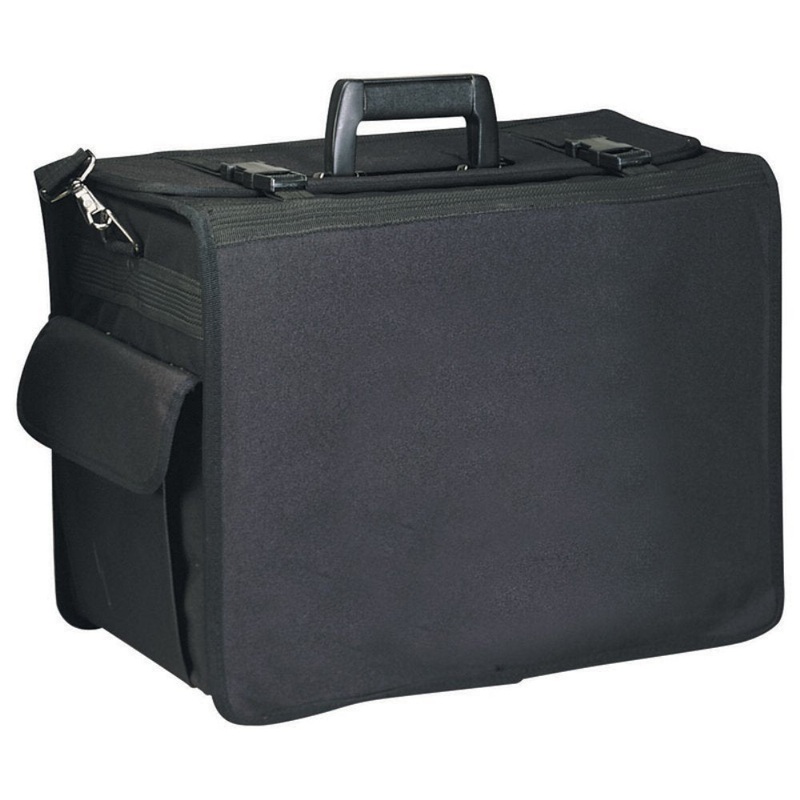 Made of 600D Polyester, its heavy-duty frame supports all six sides. Insidethe spacious main compartment is a file divider with zip and open pockets. Thetop panel opens outward, dropping 1/3 of the way down the front panel for easyinside access. Smaller top panel features several pockets for accessories.