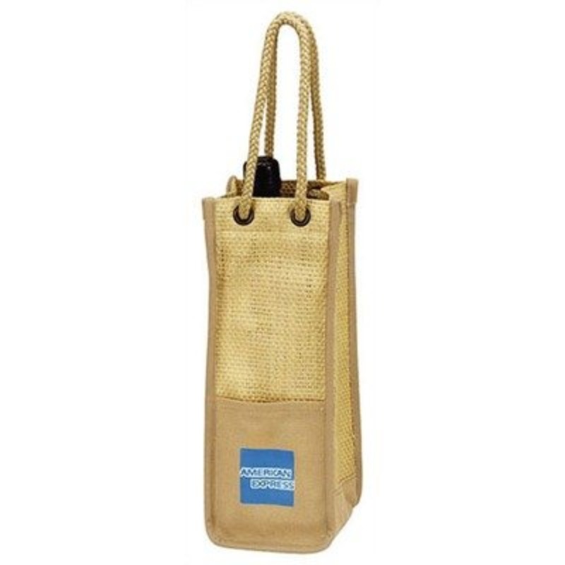 2761 Features: -Dual outside pockets hold a corkscrew and other smallitems.-Interior neatly accommodates a standard wine bottle.-Size may vary with0.25'' tolerance. Construction: -Constructed of hand-woven straw and 100pctcotton canvas. Dimensions: -Overal