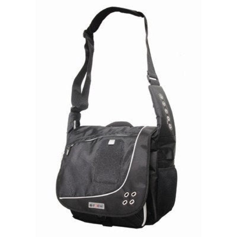 5247-Black Color: Black Features: -Five-button feature located on thestrap.-Padded laptop compartment.-Quick-access pocket up front for your phoneand wallet.-Loads of additional pockets for business or personal accessoriesand water bottle.-Extra soft air-flow open pocket in the back.-Speakerrequires 3 AA batteries (not included). Construction: -Constructed of 420Djacquard and 1680D ballistic nylon. Dimensions: -13” H x 15” W x 4” D.