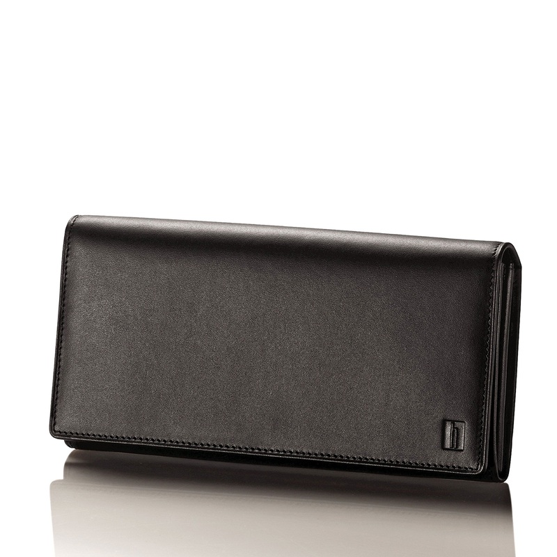 Size:8" | Color:Heritage Black American vegetable tanned leather. Snapclosure. Heat burnished details. Finely finished stitching. Gold accents.Impeccably organized interior. Zippered currency pocket. Durable nylonlining. Ten card slots. Three currency comp