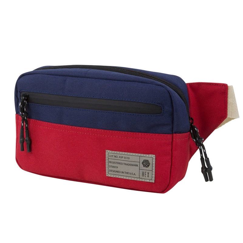 To compliment the Aspect Collection, we are proud to introduce the Aspect Waist Pack. The outer shell is constructed in 600D nylon that is treated for water resistance. On the front you will find a weather proof zippered pocket. Then unzip the main compartment to find general storage and an elastic mesh pocket for other essentials. The waist band is expandable from 25″ – 47″ and secures with a heavy duty clasp. Woven cord zipper pulls, and custom HEX Heritage logo lining round out the feature set on this travel bag.
