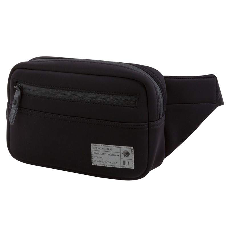 On the front you will find a zippered pocket. Then unzip the main compartment to find general storage and an elastic mesh pocket for other essentials. The waist band is expandable from 25″ – 47″ and secures with a heavy duty clasp. Genuine leather zipper pulls, and HEX Heritage logo lining round out the feature set on this travel bag