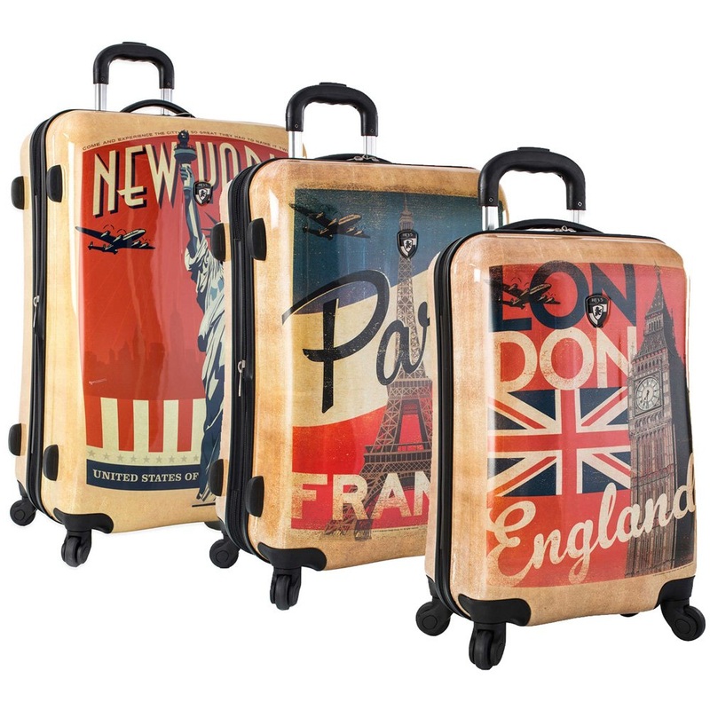 The world is our oyster, travel in confidence with the Heys America Journey21″ Spinner at your side. Crafted with durable polycarbonate composite. Eachof the three sizes have been designed to showcase different parts of the worldand when put side by side, the entire set combines to form the entire worldmap. This print is protected by a layer of glossy clear coat which gives itits brilliant shine as well as improved scratch and scuff protection. Toprovide more protection, a travel bag is included to keep it looking like newfor many more journeys to come. Internal handle system made from lightweightaluminum. Top and side carry handles allows you to easily move your luggage,or hand carry. Interior features a compression strap, two mesh zipcompartments, and a zip divide. Zipper expansion for extra room. Built-in TSAlocks. 360 degree spinner wheels. Imported. Dimensions: 21″ x 13.5″ x9″Weight: 6.2 lbs Measurements: Width: 13 in Depth: 8 in Height: 21 in Weight:10 lbs 12.8 oz