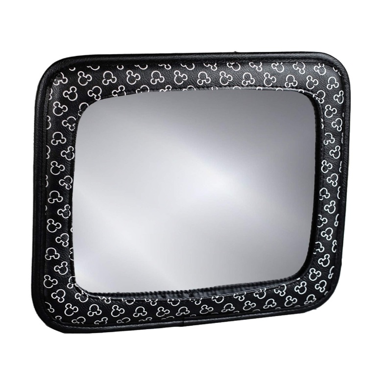 The Disney Baby by J.L. Childress Adjustable baby car mirror allows you to view your rear-facing child while in the front seat, providing peace of mind at all times. Bring magic to every car ride with the adorable Mickey Mouse pattern featured on the mirror frame. The Mirror’s large size provides a clear, wide-angle view and the mirror itself is made from shatter-resistant material. Attaching to your car’s headrest is quick and easy using hook and loop straps, plus an additional buckle strap for added security. The mirror can be adjusted to any angle, ensuring universal compatibility for you and your car. The Mickey Mouse pattern on the padded, faux leather mirror frame is sure to delight and entertain your little one!