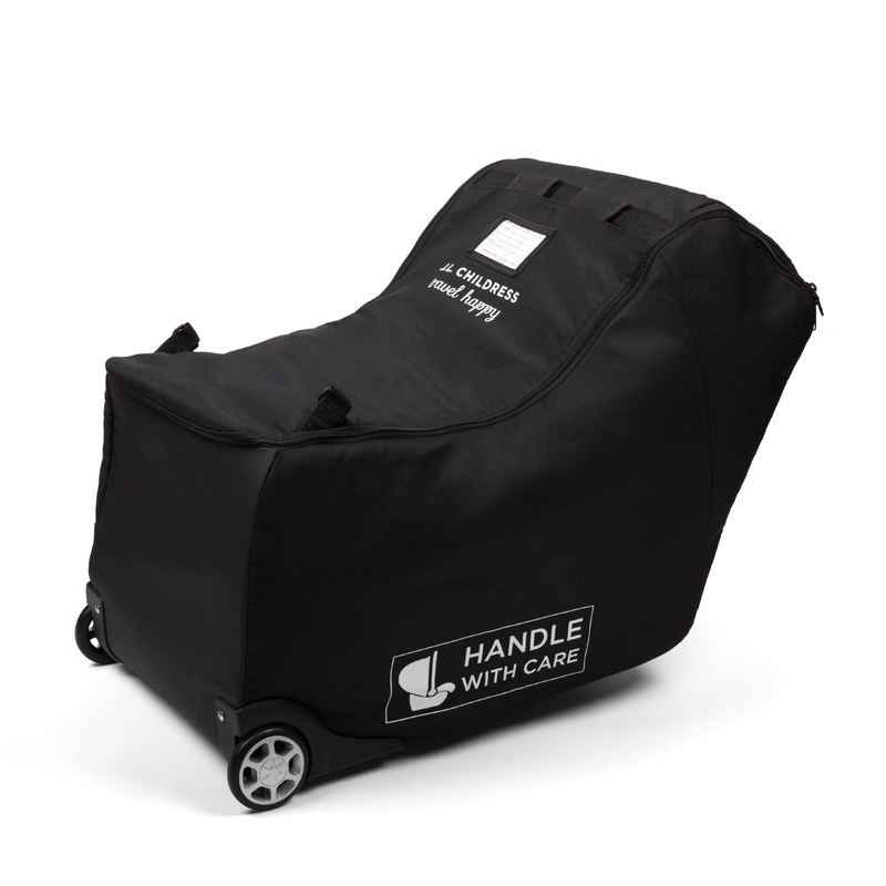 The J.L. Childress Premier Padded Infant Car Seat Travel Bag with Wheels offers thick padding to fully protect your infant car seat and sturdy, smooth-rolling wheels for travel ease. The Premier fits almost all infant car seats without their base attached, and MOST infant car seats with their base attached, such as the Nuna Pipa, Graco SnugRide, UPPAbaby Mesa, Chicco KeyFit, MaxiCosi Mico, Evenflo, Baby Jogger and Baby Trend infant car seats. The Premier will fit most infant car seats WITH their base attached as long as the base does not have a non-collapsible anti-rebound bar OR a non-collapsible stability leg. Padded backpack straps provide a hands-free carry option, while hand-carry straps offer easy liftting and carrying in any situation. The Premier’s multiple wheels allow you to easily roll your car seat when traveling. A discreet silicone AirTag holder is attached to the interior of the bag, allowing you to insert your own AirTag and track your valuable car seat. Backpack straps detach and tuck away during transit to avoid damage. The dual zipper opening makes it easy to take your car seat in and out of the bag, and can be locked for added security. Use the padded carry handle to easily lift your bag and the clear ID pocket and ID card to identify your bag. The Premier Infant Car Seat Travel Bag with Wheels is backed by our Lifetime Warranty and U.S. based Customer Service Team. Travel Happy with J.L. Childress!