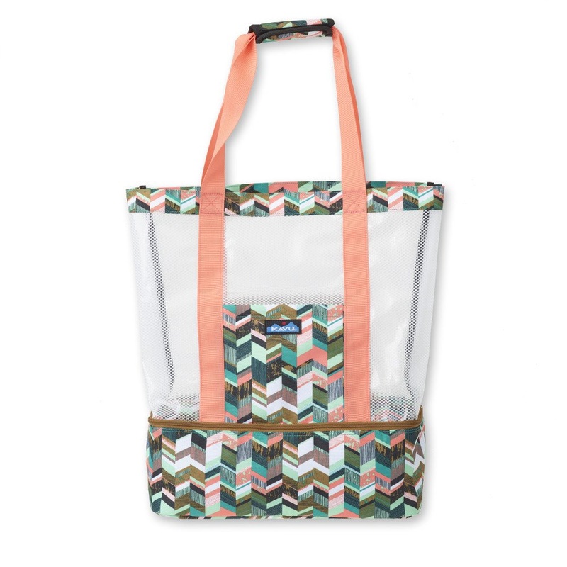 Fully insulated/padded cooler container attached to the bottom of a laminated mesh tote, fixed shoulder straps, one main compartment, exterior zip and stash pockets.KAVUs Picnic Pack is handy insulated/padded cooler thats attached to the bottom of a spacio