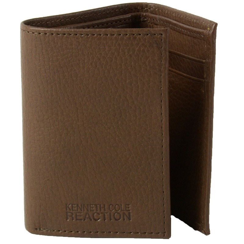 Kenneth Cole ReactionGenuine Leather Trifold Wallet Cuir Authentique Brown
