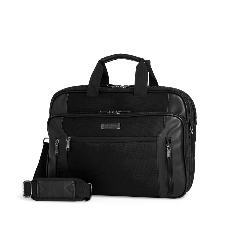 Stay ORGANIZED on the road with this Keystone collection laptop business briefcase portfolio from Kenneth Cole Reaction. Made of a lightweight and durable 1680D ballistic polyester exterior with a fully lined interior that makes sure that the bag holds up, no matter where life takes you. Dual compartment top zip construction provides ample space for your belongings. The rear exterior features an attached trolley strap to fit over most upright luggage handles for hands-free carrying. The main compartment includes two padded laptop pockets that fit most laptops with up to a 13.3-Inch or a 17.3-Inch screen. Designed with a checkpoint friendly/EZ-scan feature that complies with TSA guidelines, so your laptop does not need to be removed when passing through airport security checkpoints, allowing you to get on your way faster. The EZ scan section also includes three zipper pockets for cords and accessories. The front exterior compartment zipper pocket features an extensive organizer to hold all your business essentials and three exterior zipper pockets for quick access. The front exterior also features three additional zipper pockets for quick and easy access. Convenient top handles allow for easy carrying, and a removable, adjustable, and padded shoulder strap provides added comfort. Backed by a manufacturer lifetime limited guarantee against craftsmanship and manufacturer defects. Overall Size: 16.75 L x 12.75 H x 5.75 D. Laptop Compartiment Dimensions: 16.2 L x 12.25 H x 1.5 D. Tablet Pocket Dimensions : 13 L x 12 H x 1.4 D. Product Weight: 3 lbs. The perfect multi-pocket feature rich 17″ laptop portfolio for those who value both style and function.