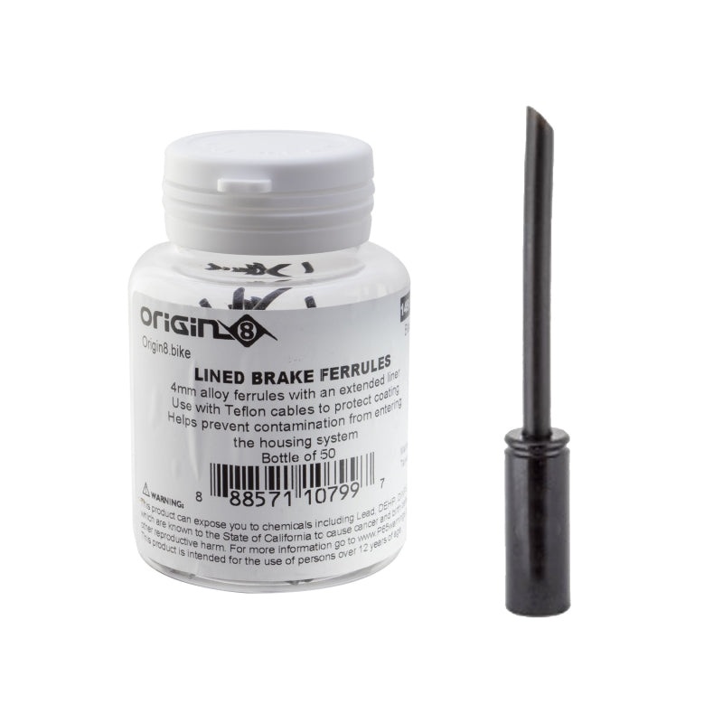Alloy ferrules with an extended liner for high-performance low-friction applications. Use with Teflon cables to protect coating from premature wear. Helps prevent contamination from entering the housing system. Available for gear and brake housing. Sold in bottles of 50