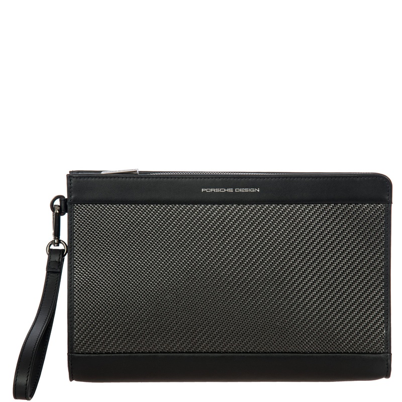 The thrill of carbon: the high-tech material from motorsport gives the clutch bag like all models in the Carbon Collection its unmistakable design DNA. Light, structured carbon fibre fabric and the finest Nappa leather are combined within an iconic, minimalist design. The clutch captivates with its clear, elegant shape and is ideal for every occasion, thanks to the spacious main compartment with a zip. High-quality metal accessories in a galvanised gunmetal finish lend it an exclusive look. At the same time, the handle loop, slip pocket and zip pocket as well as the business organiser offer comfort and convenience when carrying the clutch and storing essentials.