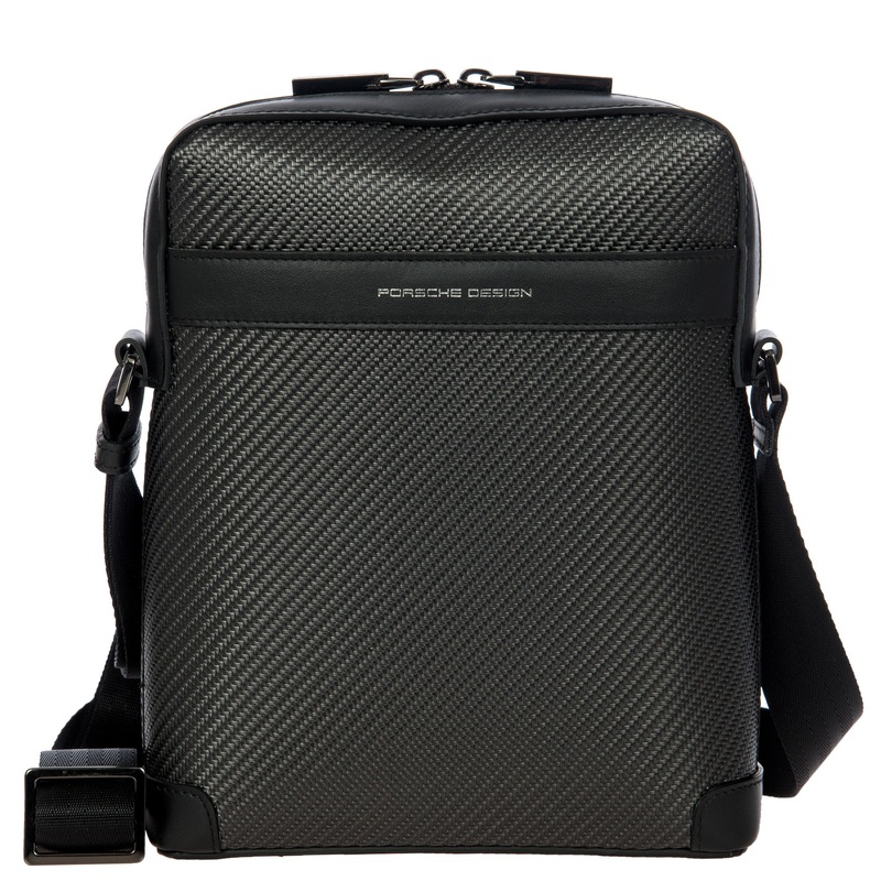 The thrill of carbon: the high-tech material from motorsport gives the vertical shoulder bag like all models in the Carbon Collection its unmistakable design DNA. Light, structured carbon-fibre fabric and the finest box calf leather are combined with in an iconic, minimalist design to make the bag an exclusive, timelessly stylish accessory. A practical business organiser and a padded compartment for tablets can be found in the easily accessible main compartment, while another compartment with a magnetic closure features on the front of the bag. The carrying strap is adjustable. High-quality metal accessories in a galvanised gunmetal finish round off the look of the shoulder bag.