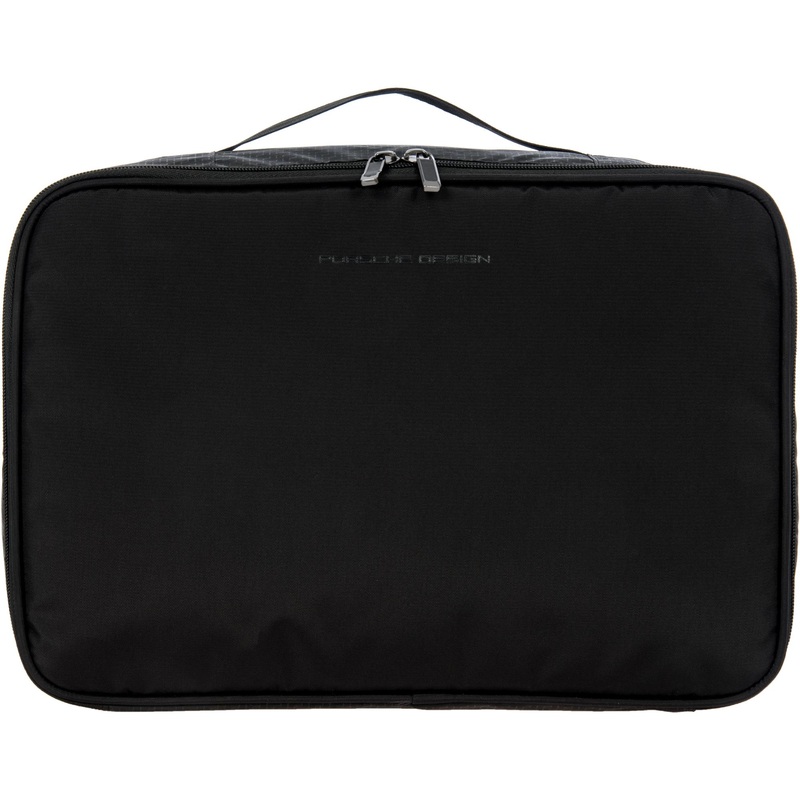 The Porsche Design Roadster Nylon collection clearly sets itself apart from the broad field of classic business bags with its intelligent functionality and exclusive, technical design. The new travel accessories in the series make traveling even more organized and comfortable. The Porsche Design Roadster Nylon Shoe Bag made of nylon fabric with Porsche Design-typical lining protects your shoes or even high-value garments during car trips and air travel. The pair of shoes can be separated from each other with the integrated interior divider, protecting them from scratches. All-round zipper and carrying handle make the use of the shoe bag supremely comfortable. The size of the shoe bag and other travel accessories are designed to fit perfectly into Porsche Design luggage. Must-haves for traveling in style.