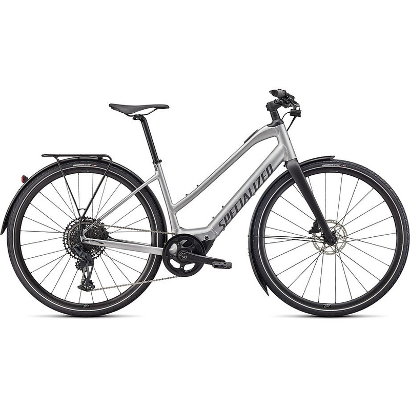 Step-through frame for easier on/off and managing commuter traffic. Turbo SL mounted rear rack, Racktime-compatible, for your favorite bags and panniers, and DRYTECH fenders to keep the spray away.