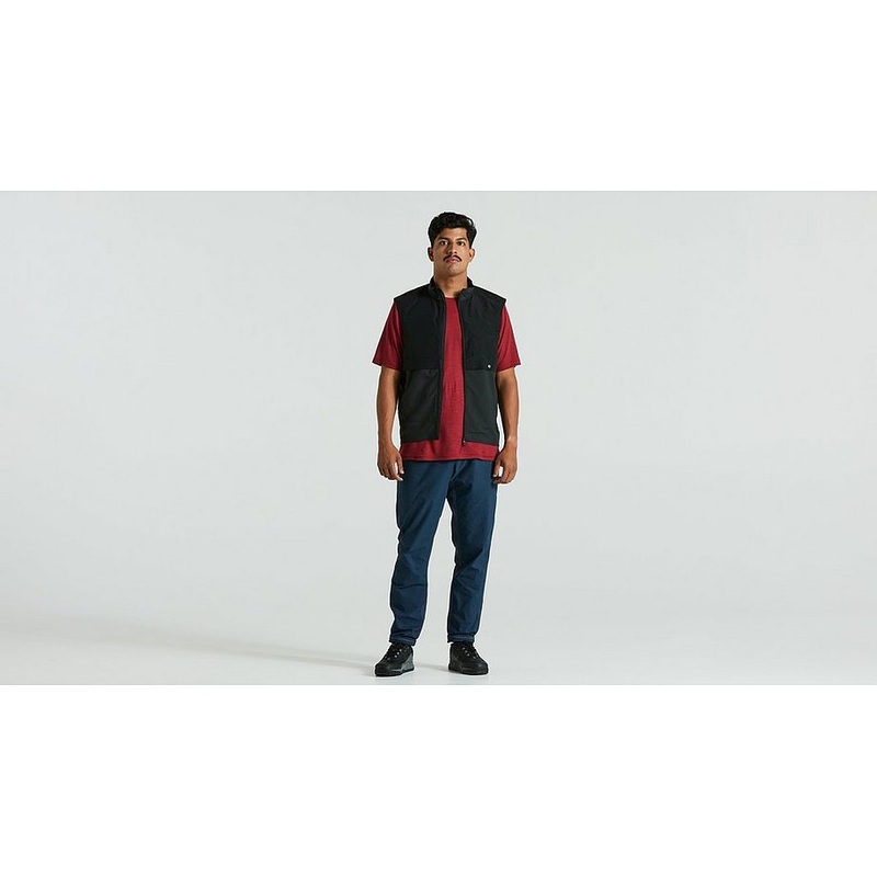 Light and packable vest, optimized for bike riding with a reinforced upper torso providing wind-resistance where its most needed. This section is also waxable for even higher wind- and water-resistance. The back and lower front are made from light and durable recycled polyester. High-low hem with elastic back and armholes for a closer fit when riding. Several functional pockets, including two top-loaded pockets and two zippered hand pockets. Can be packed into its own pocket. Great as backup gear on any bike ride. Part of the Specialized/Fjllrven series for urban rides and bikepacking adventures.