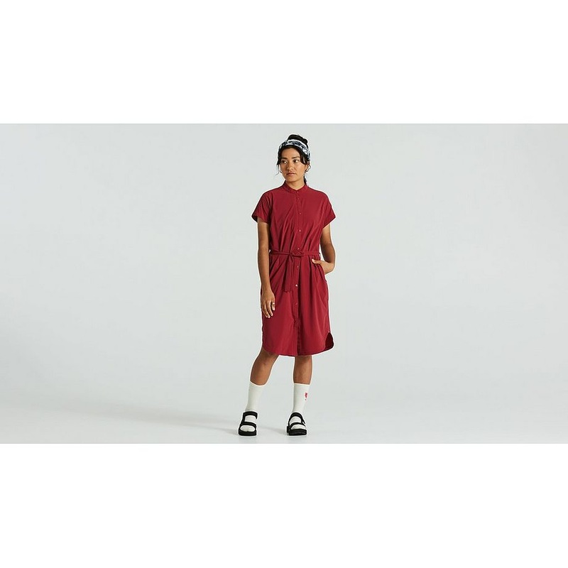 Light, versatile dress with a side cinch for adjusting the length. Made with a moisture-transporting and quick-drying fabric, this offers a versatile, stylish option optimized for bike riding. It can be worn with or without the belt, which also has a reflective detail. Reflective side cinch located in hand pocket for adjusting the length. It also has a secure Napoleon pocket for your essentials. Snap buttons at the front. Part of the Specialized/Fjllrven series for urban rides and bikepacking adventures..