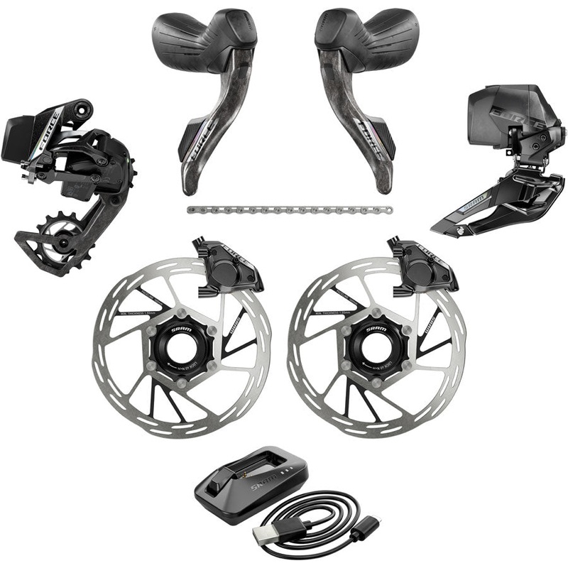 SRAM Force eTap AXS Road Groupset – 2×12-Speed HRD Shift/Brake Levers FM Calipers CL Rotors Chain F/R Derailleurs E1