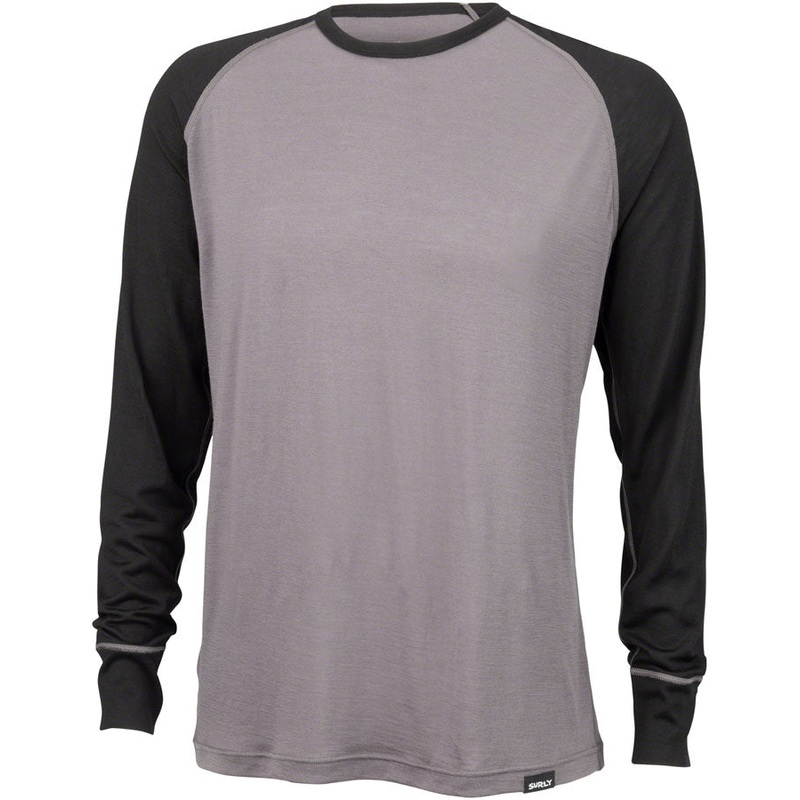 Surly Merino Raglan T-Shirt - Gray/Black XS. Made from lightweight Merino wool the Surly Raglan is comfortable for a wide range of conditions. Its ideal on its own when temps arent too chilly or for layering when its colder.100% Merino Wool is a natural in